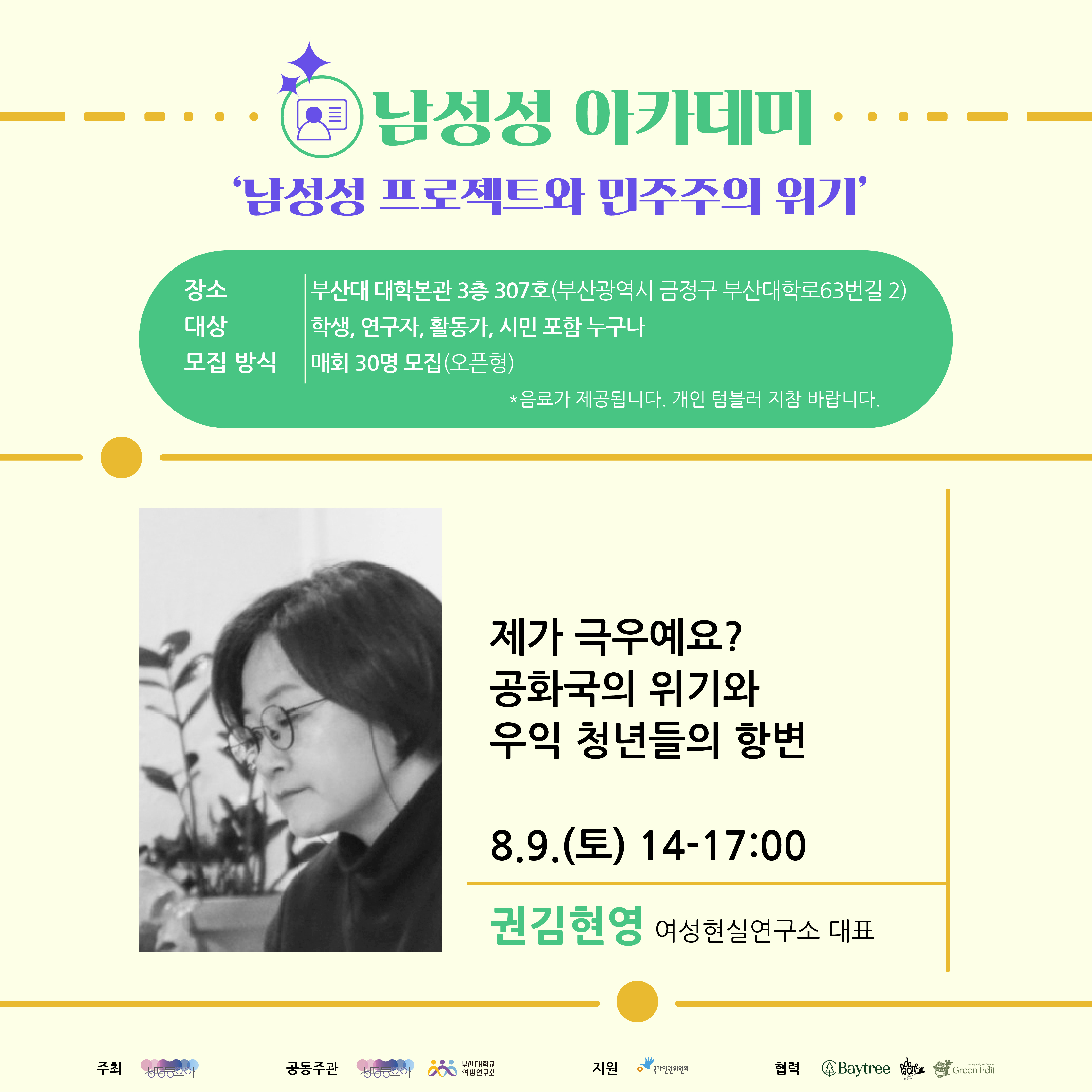 부산대학교 여성연구소는 성평등위아와 함께 "남성성 아카데미"를 개최했습니다.