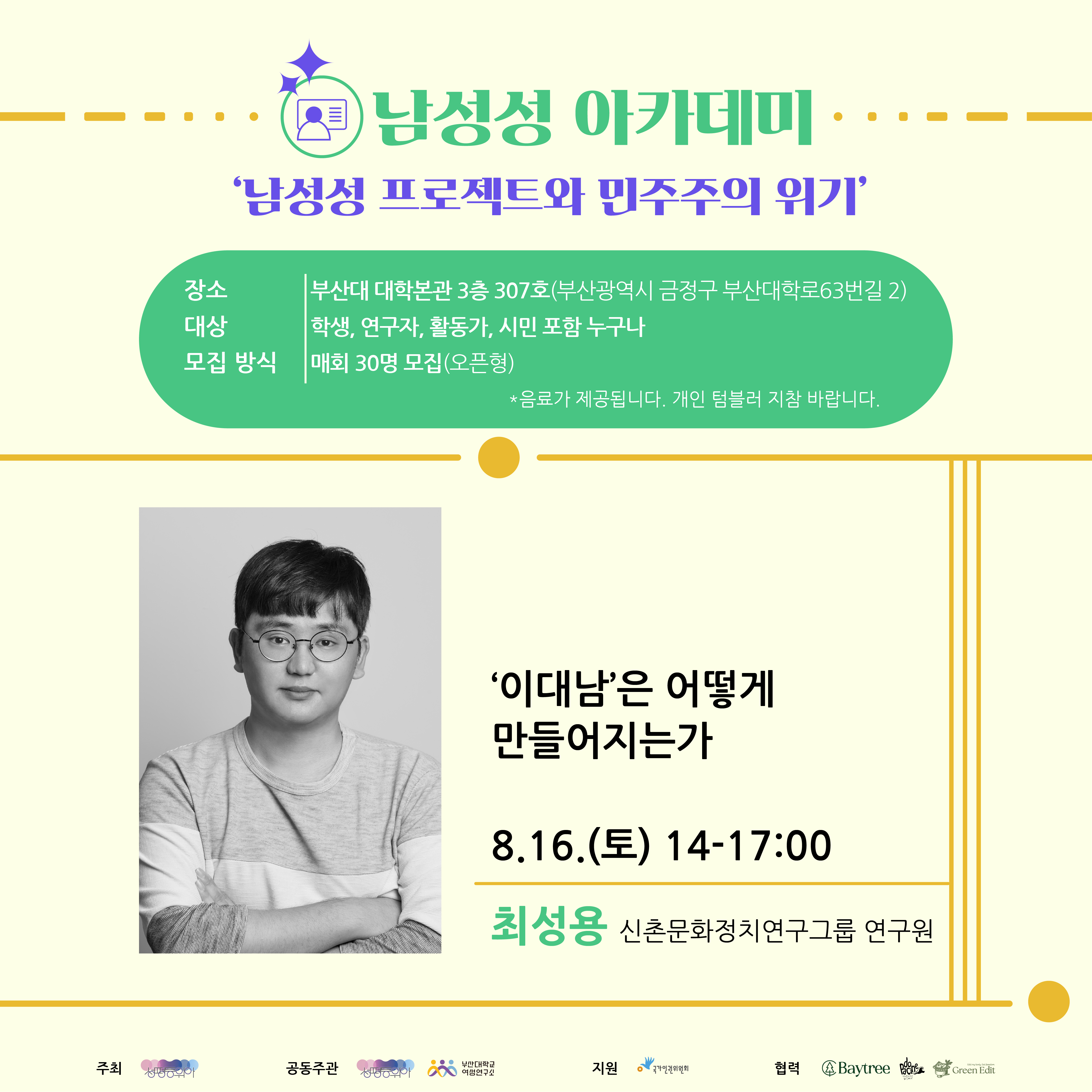 부산대학교 여성연구소는 성평등위아와 함께 "남성성 아카데미"를 개최했습니다.