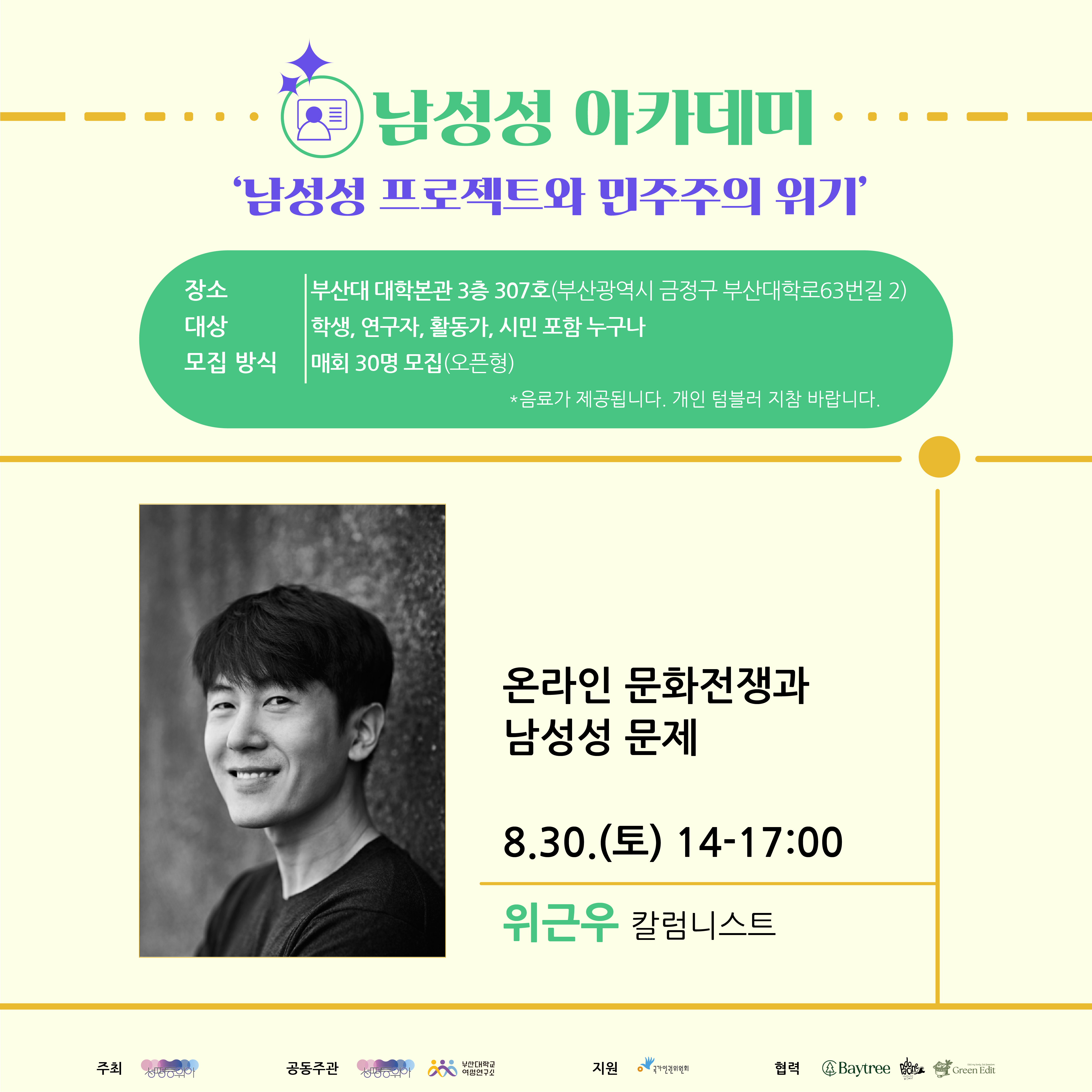 부산대학교 여성연구소는 성평등위아와 함께 "남성성 아카데미"를 개최했습니다.