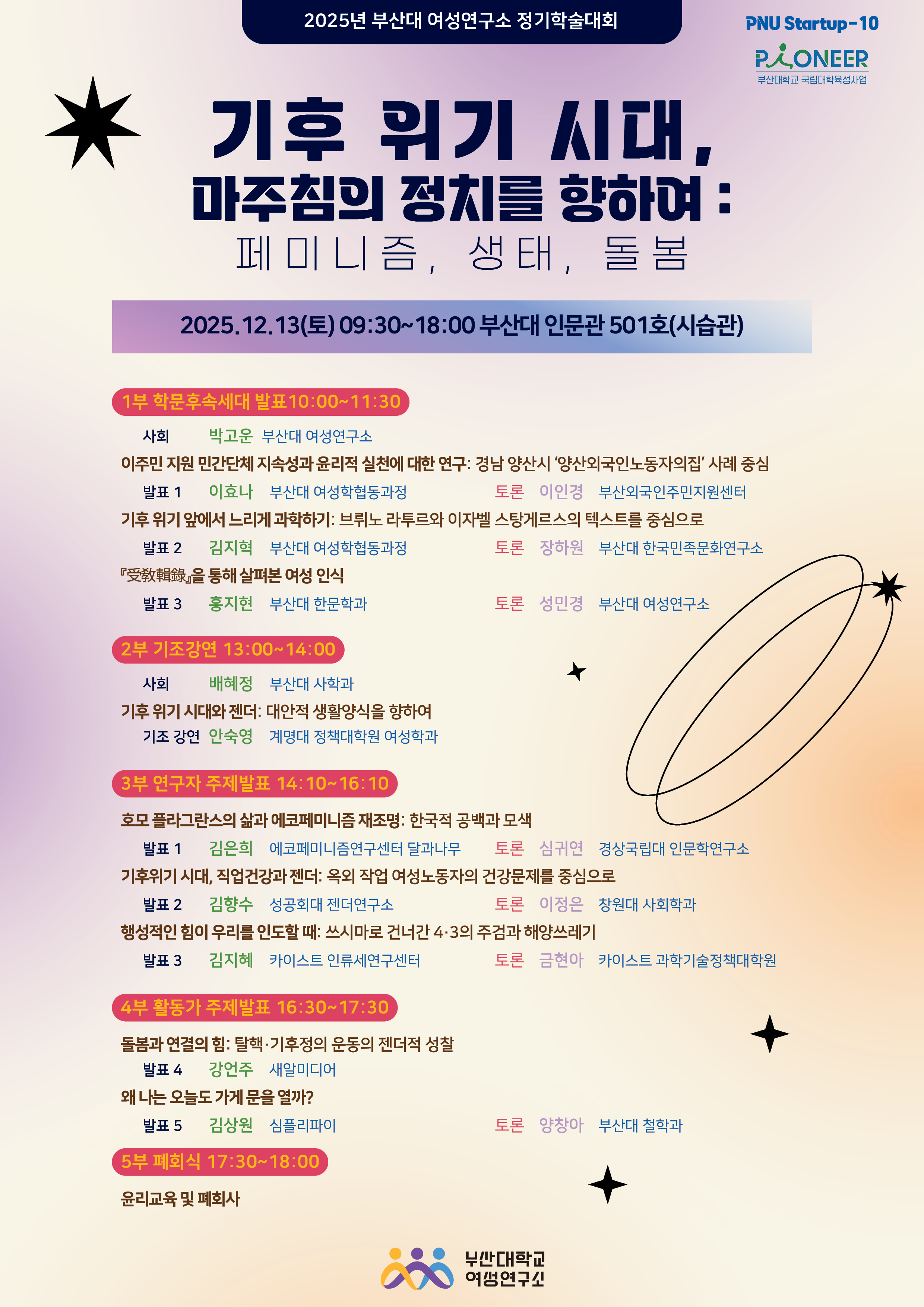 2025년 부산대학교 여성연구소 정기학술대회 <기후 위기 시대, 마주침의 정치를 향하여: 페미니즘, 생태, 돌봄> 개최